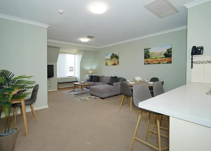 Die 75 m² großen Apartments befindet sich im Stadtteil Perth CBD, gleich neben der Perth Mint entfernt. Theater His Majesty's ist in ca. 2 km Entfernung vom Apartment, während die Bushaltestelle Haig Park Circle 400 m von der Unterkunft ist. 6 Fußminuten von dem 40 Modern & Chic Apt In East Perth entfernt liegt Victoria Gardens.
