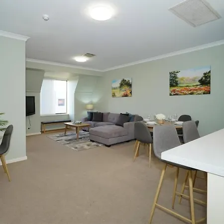 Het 75 m^2 grote appartement bevindt zich in de East Perth wijk van Perth, binnen 10-minuten rijden van het Kings Park & Botanische Tuin. Te voet bent u binnen 20 minuten in het centrum van Perth.